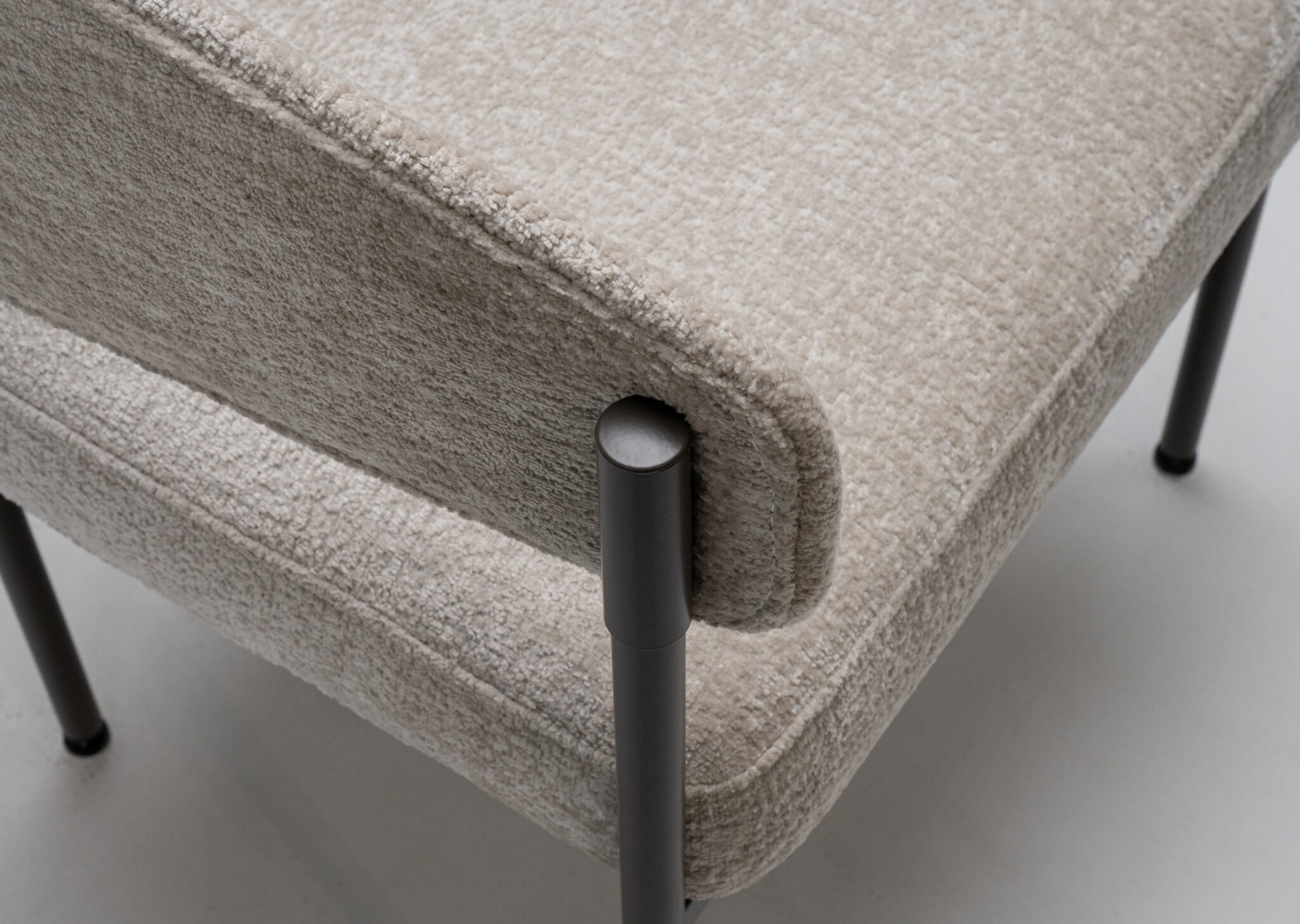 The Alice chair features a modern and contemporary style, characterized by clean lines and a minimalist structure. This enveloping chair stands out with its armrests integrated into the continuation of the backrest. Its fully welded steel frame gives it a robust yet elegant appearance, without compromising on comfort.