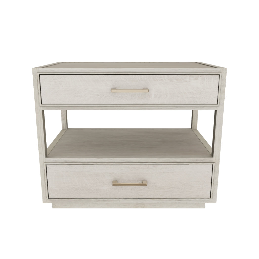 The Bridgerton Nightstand embodies a minimalist profile and clean lines for a mid-century modern bedroom. Fully constructed from oak veneer and solid oak wood with powder-coated iron handles in a champagne gold finish. As wood is an organic, porous material, these pieces will contain natural variation of texture and may also exhibit fine indentations and cracks. Wood pieces will also display a disparity of colour and grain, and visible knots and burls that add to the character of each piece. Made in India. With refined craftsmanship, this design was brought to life by skilled local artisans. Due to the nature of handcraftsmanship, unique imperfections such as fissures, markings and variations in colour and shape are welcomed and appreciated characteristics for a truly one-of-a-kind piece.