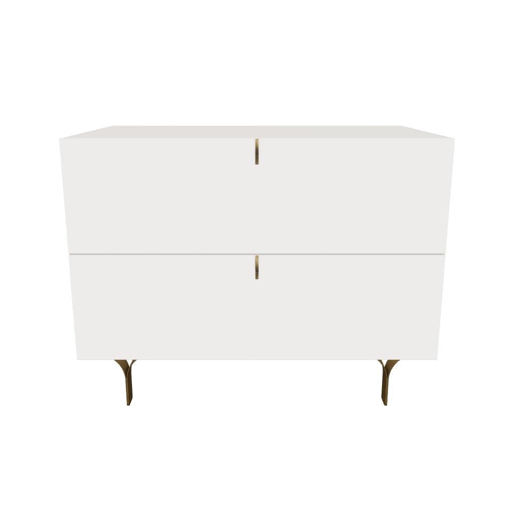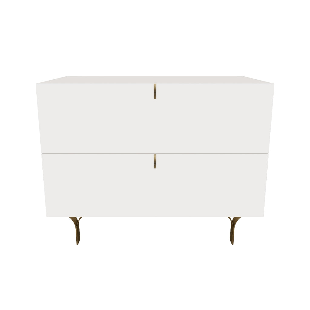Add beauty to your bedroom oasis with this large, stylish nightstand. Designed with two soft closing drawers crafted from rubberwood, featuring a subtle wood grain texture and a painted cream finish. Uniquely sculpted antique brass feet and drawer pulls complete the look.