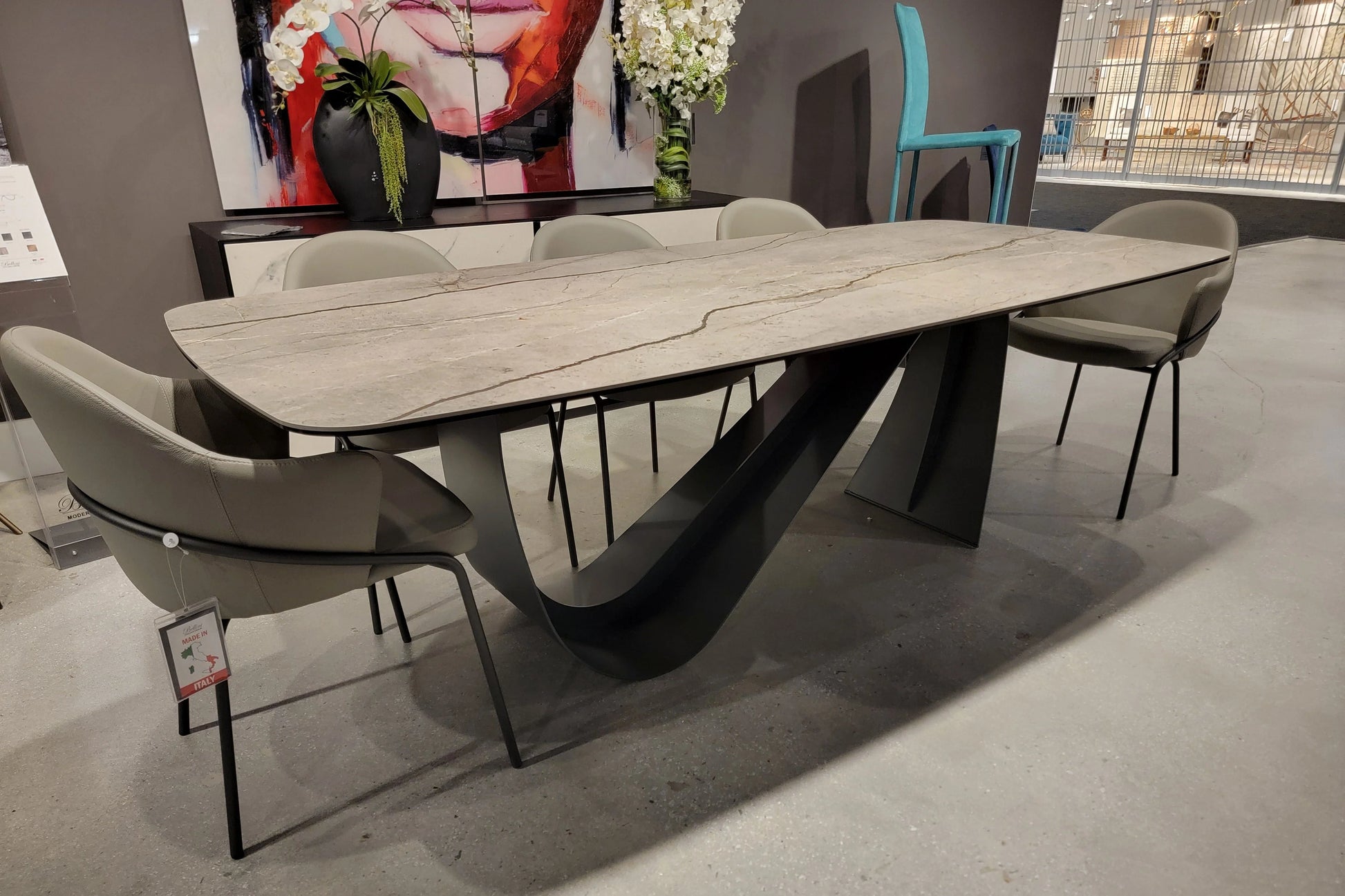 The Genoa Dining Table is a luxurious fusion of art and functionality, designed to be the centerpiece of any modern dining space. Available in Anthracite and Brushed Gold, the base brings a flow of life to every room it lives in. The ceramic top is available in four exquisite finishes: Pampa, Onice Nero, Onice Avorio, and Silver Root, each showcasing unique veining and textures that add a touch of natural beauty to its sophisticated design. Perfect for those who value luxurious materials and innovative design, this dining table combines durability, and style to create an unforgettable dining experience.
