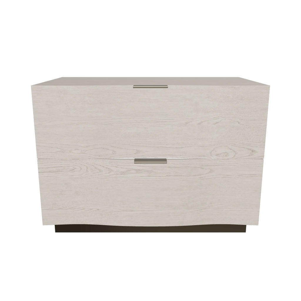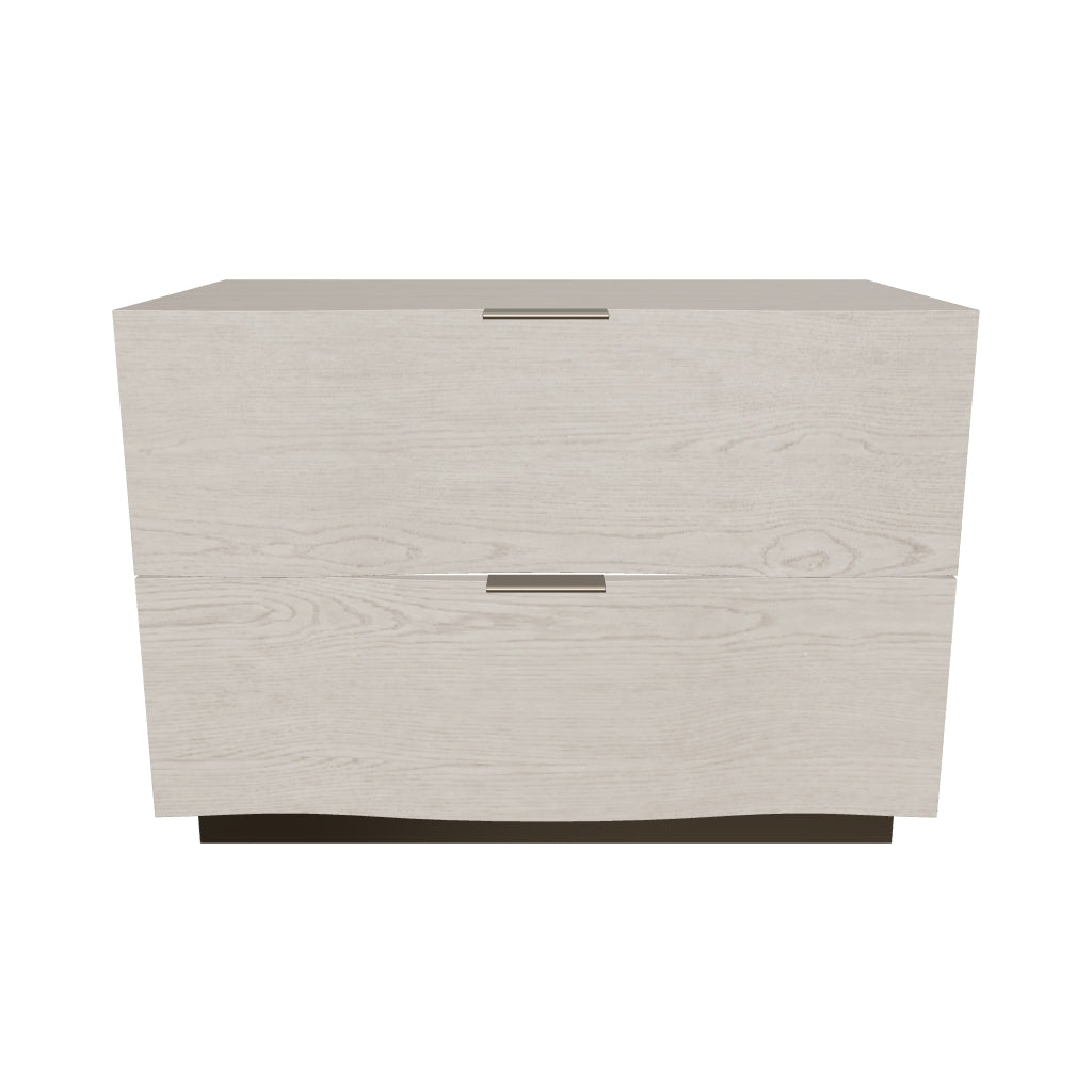 The Hoyos Nightstand is a study in simplicity. Subtle curves on the drawer fronts provide a striking pattern and give added definition to its silhouette. Crafted from poplar wood and oak veneer with warm brass aluminum handles. As wood is an organic, porous material, these pieces will contain natural variation of texture and may also exhibit fine indentations and cracks. Wood pieces will also display a disparity of colour and grain, and visible knots and burls that add to the character of each piece.
