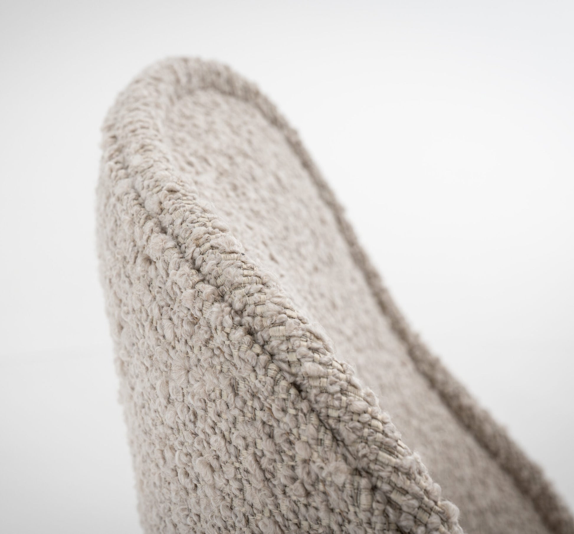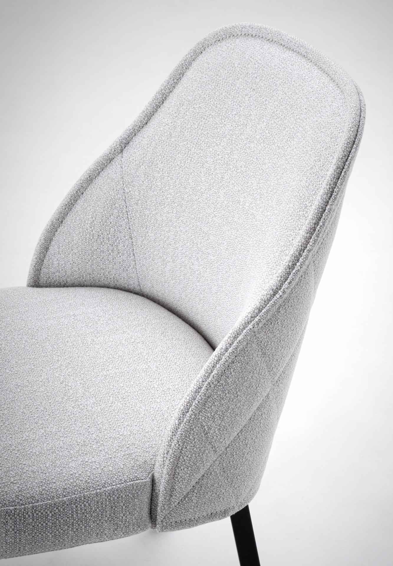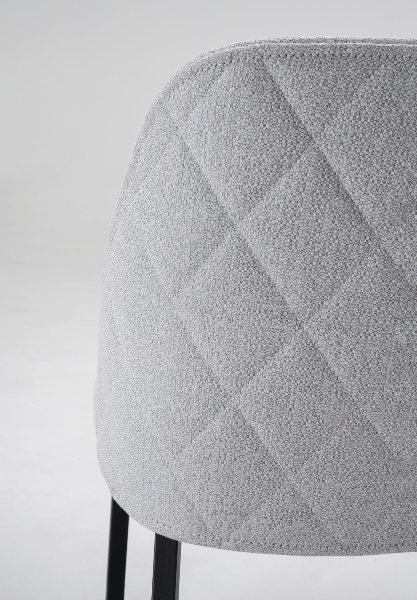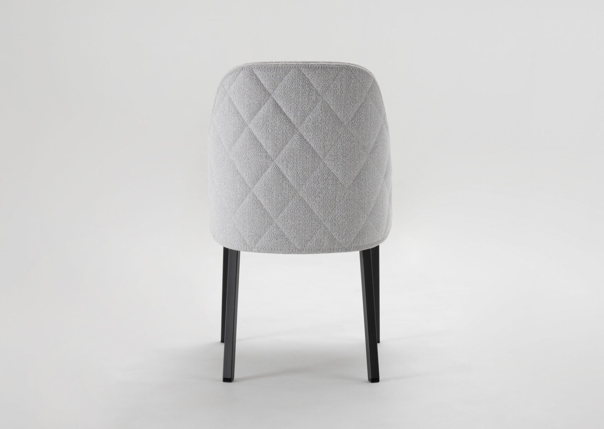 The June chair features a flowing silhouette with high resilience foam padding covered in fabric available in a range of quality textiles. Founded on solid wood or metal legs, this piece combines comfort and elegance, promising to become a refined focal point in any dining or work space.