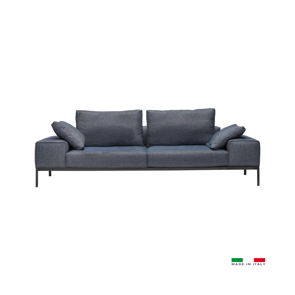 Portofino Sofa, wide upholstered plateau, wide low armrests, aluminum frame (Available in Blue) Dimensions: 87" x 35" x 35" Seat height: 16"