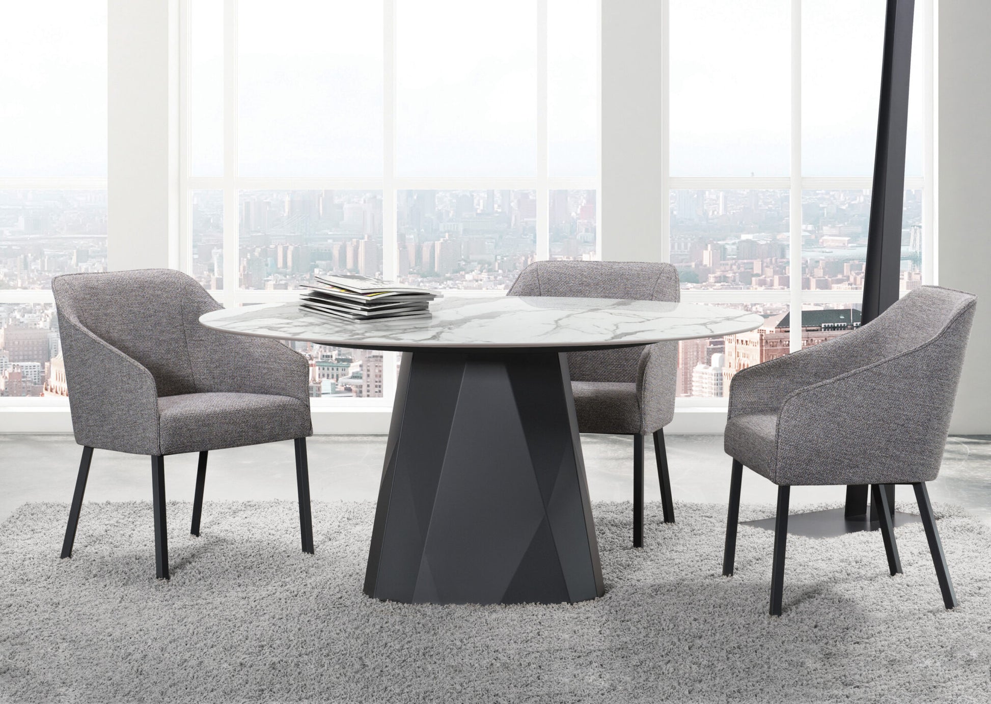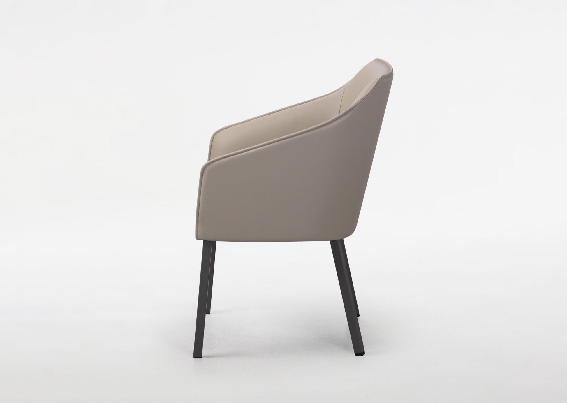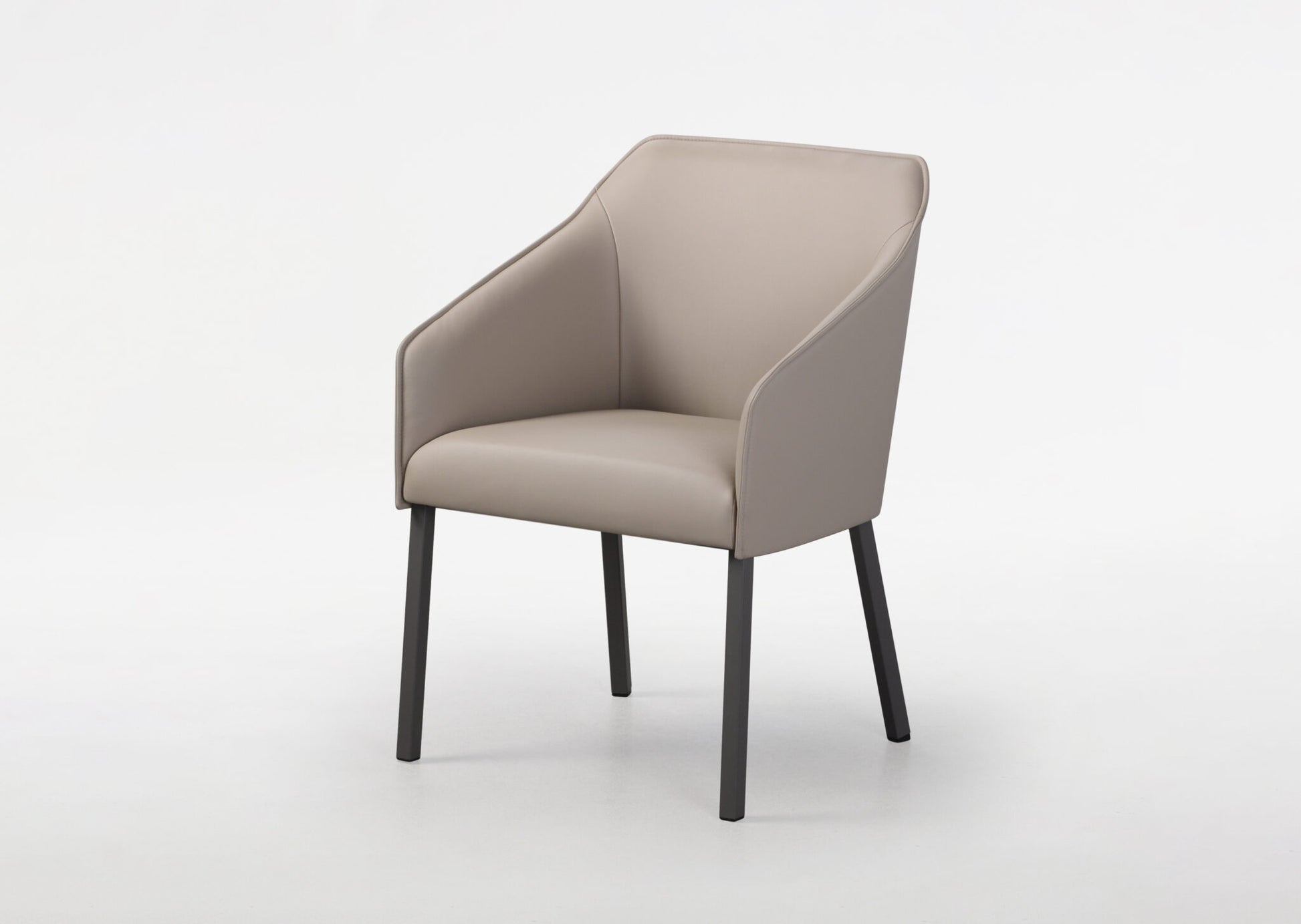 The Sara II chair, with its modern lines and elegant armrests, combines beauty with practical comfort. Its seat is supported by steel or solid wood legs, while the high-resilience foam padding provides a wrapping and relaxing seating experience.
