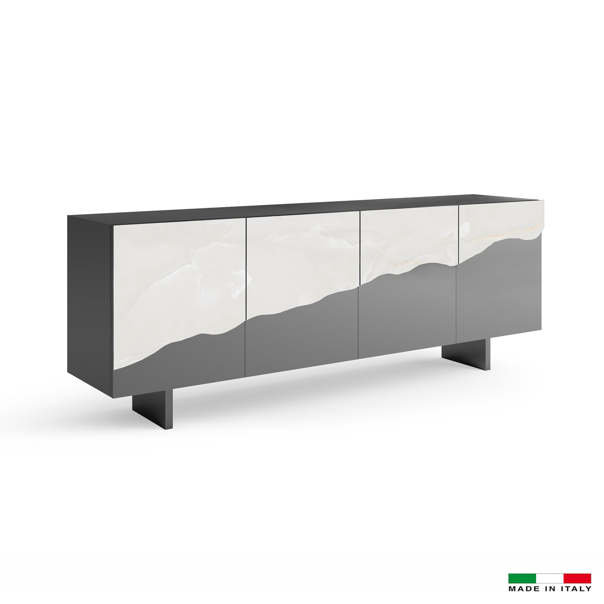 Stocked in a Sodalite Blue Italian Ceramic, the Wave Sideboard is an elegant piece featuring a sleek design with a wave-like pattern. Offering both style and functionality for your Dining or living space.